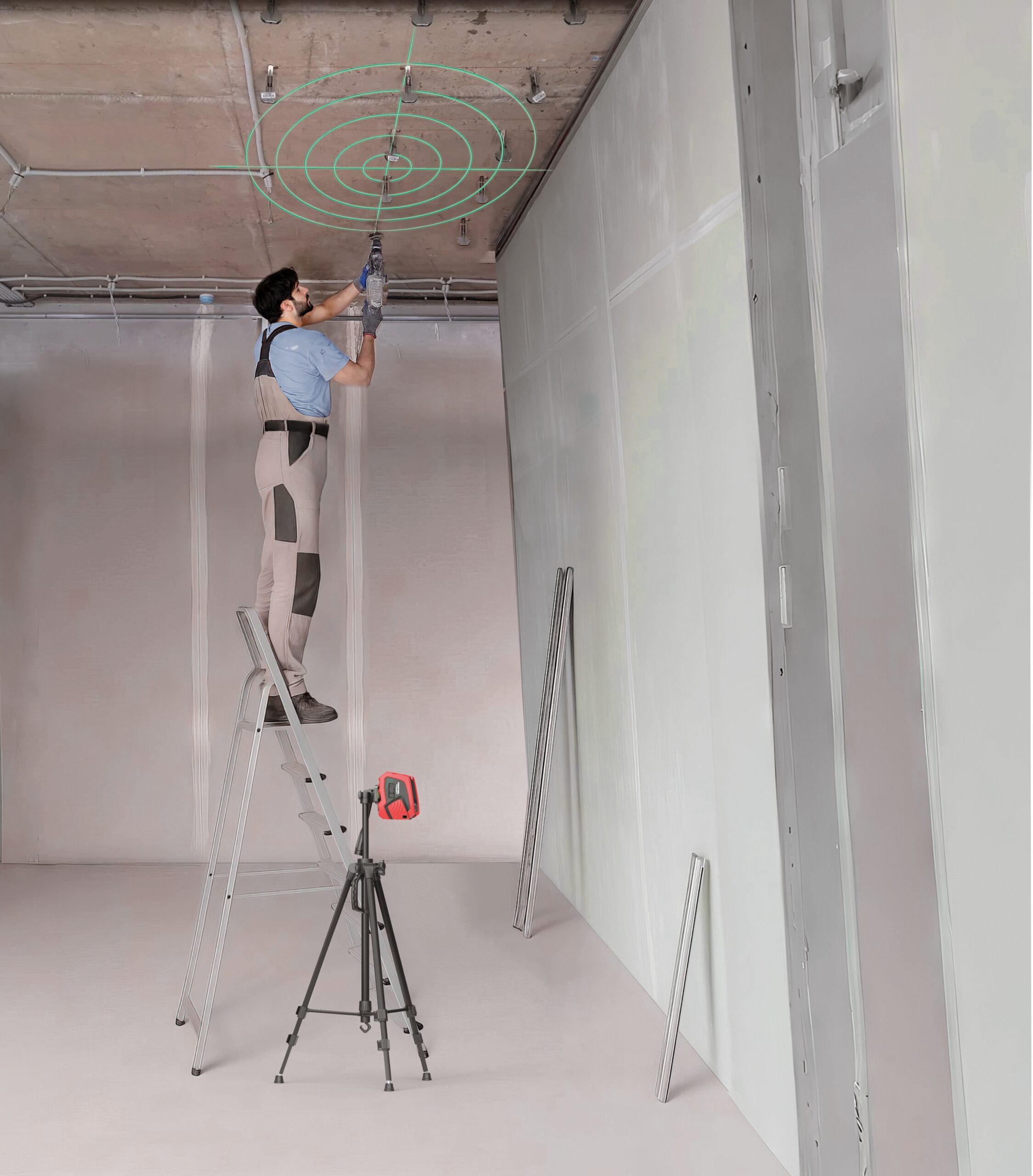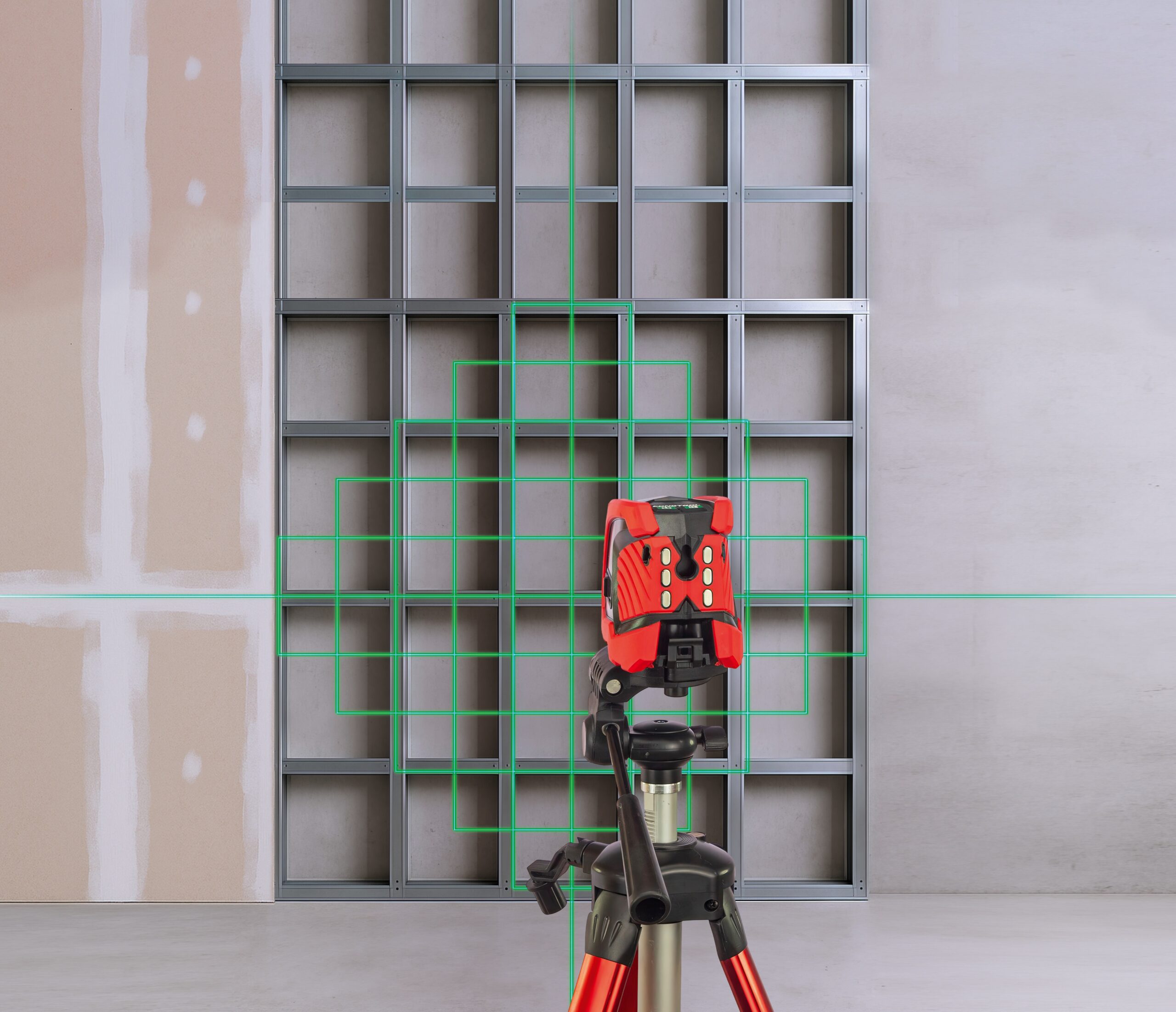 Gracias a su sistema de proyección en cuadrícula perfectamente proporcionada, Progressor permite trasladar medidas al espacio de forma inmediata, facilitando trabajos de tabiquería, techos, suelos técnicos, instalaciones, alicatados y replanteos interiores complejos. Una solución única en el mercado, pensada para profesionales que buscan máxima eficiencia y control visual del replanteo.
