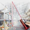 El sensor de inclinación incorporado permite calcular la distancia horizontal y vertical del medidor de distancia del láser al objeto. Por ejemplo, puede utilizar esta función para determinar la altura de un edificio y la distancia del dispositivo al objeto, incluso si hay un obstáculo.