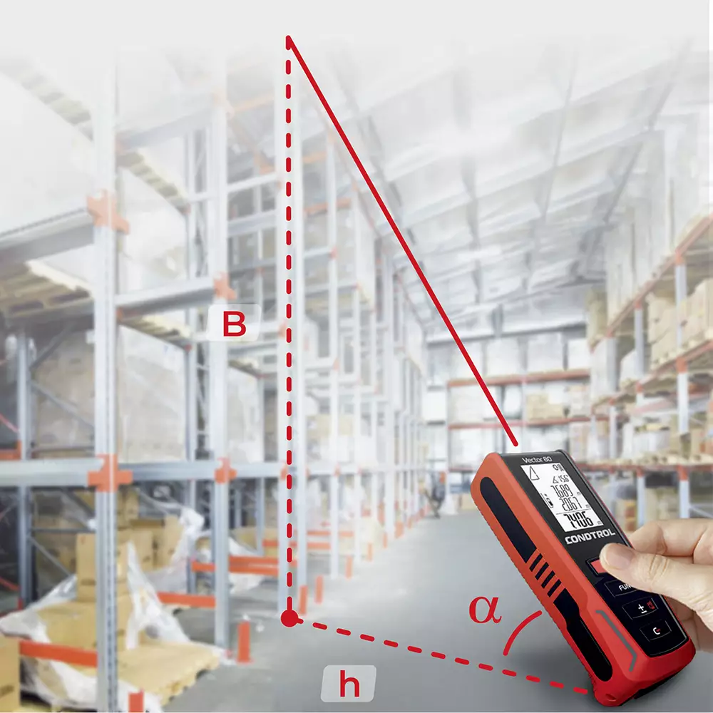 El distanciómetro Vector 80, cuenta con la capacidad de medir la distancia entre dos puntos arbitrarios en el espacio gracias al acelerómetro 3D incorporado, permitiendo por ejemplo, calcular la longitud de un segmento que pasa a través de edificios u obstáculos (pared, árboles, valla) con tan sólo dos mediciones.