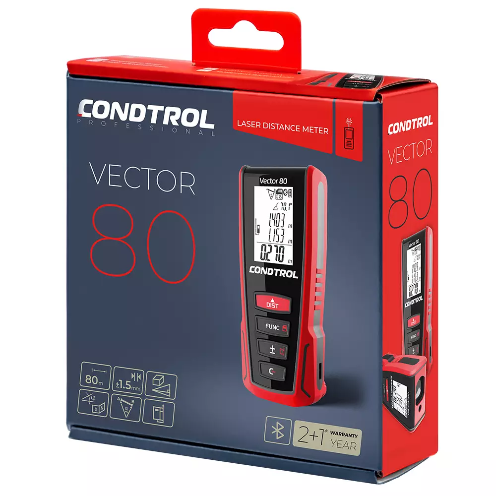 El CONDTROL Vector 80 es un moderno distanciómetro láser diseñado para la medición rápida y precisa de distancias de hasta 80 m. Cuenta con un diseño ergonómico, una alta velocidad de medición y pantalla retroiluminada que garantizan un comodidad y un funcionamiento adecuado ante cualquier condición de iluminación.